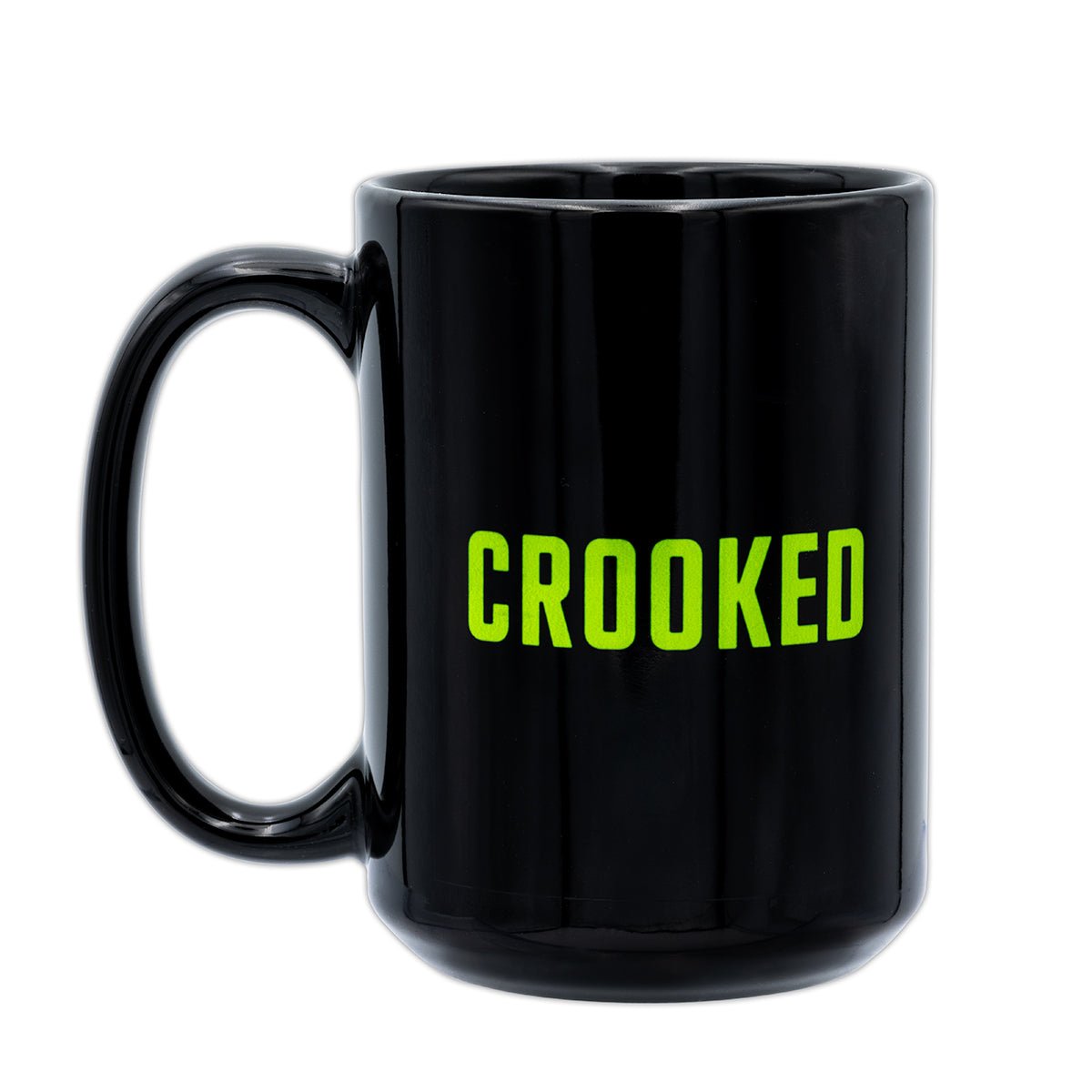 15 oz. stoneware coffee mug with Lovett or Leave It logo on front and Crooked logo on back. Matte black outside/glossy black inside.